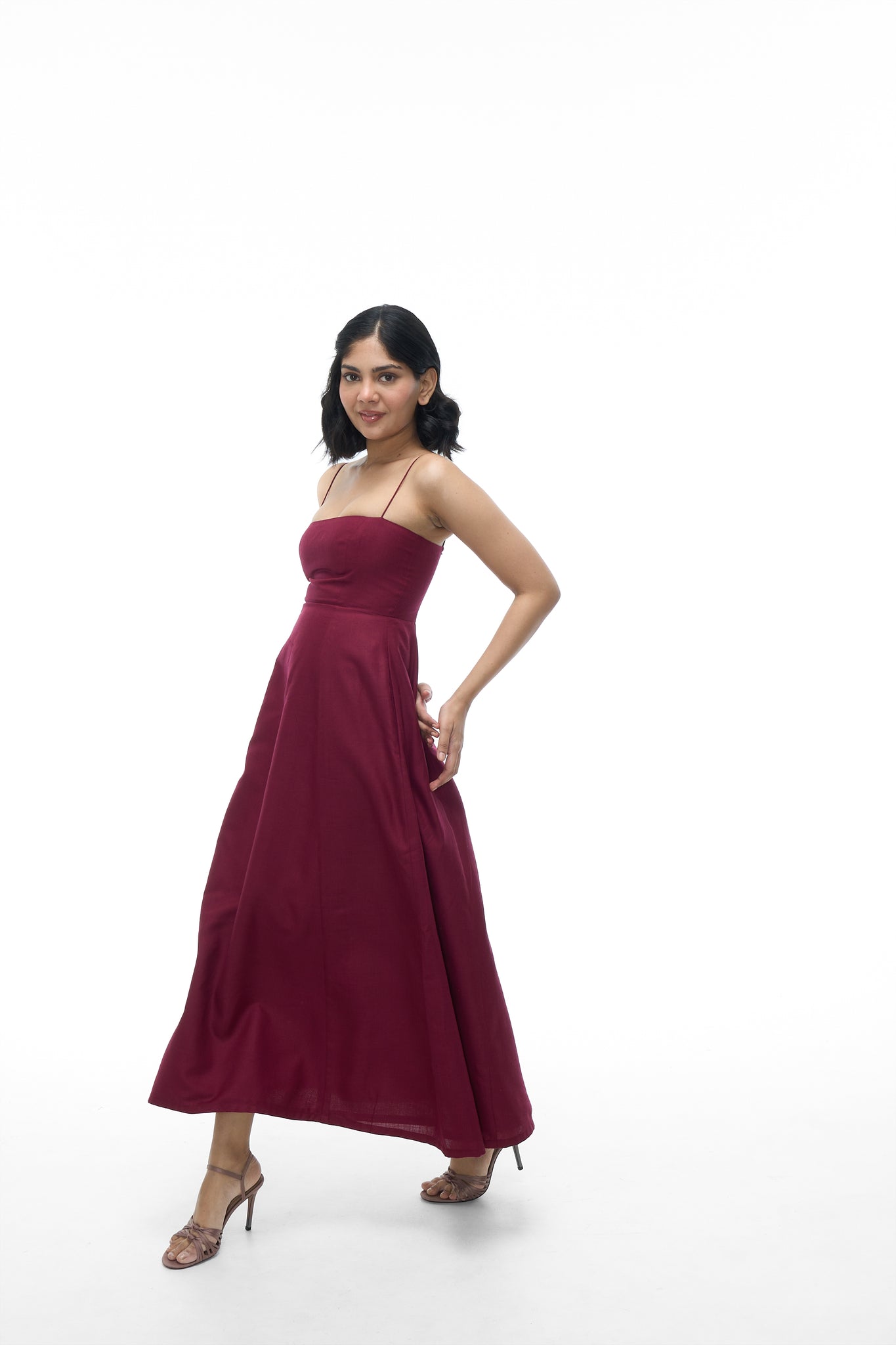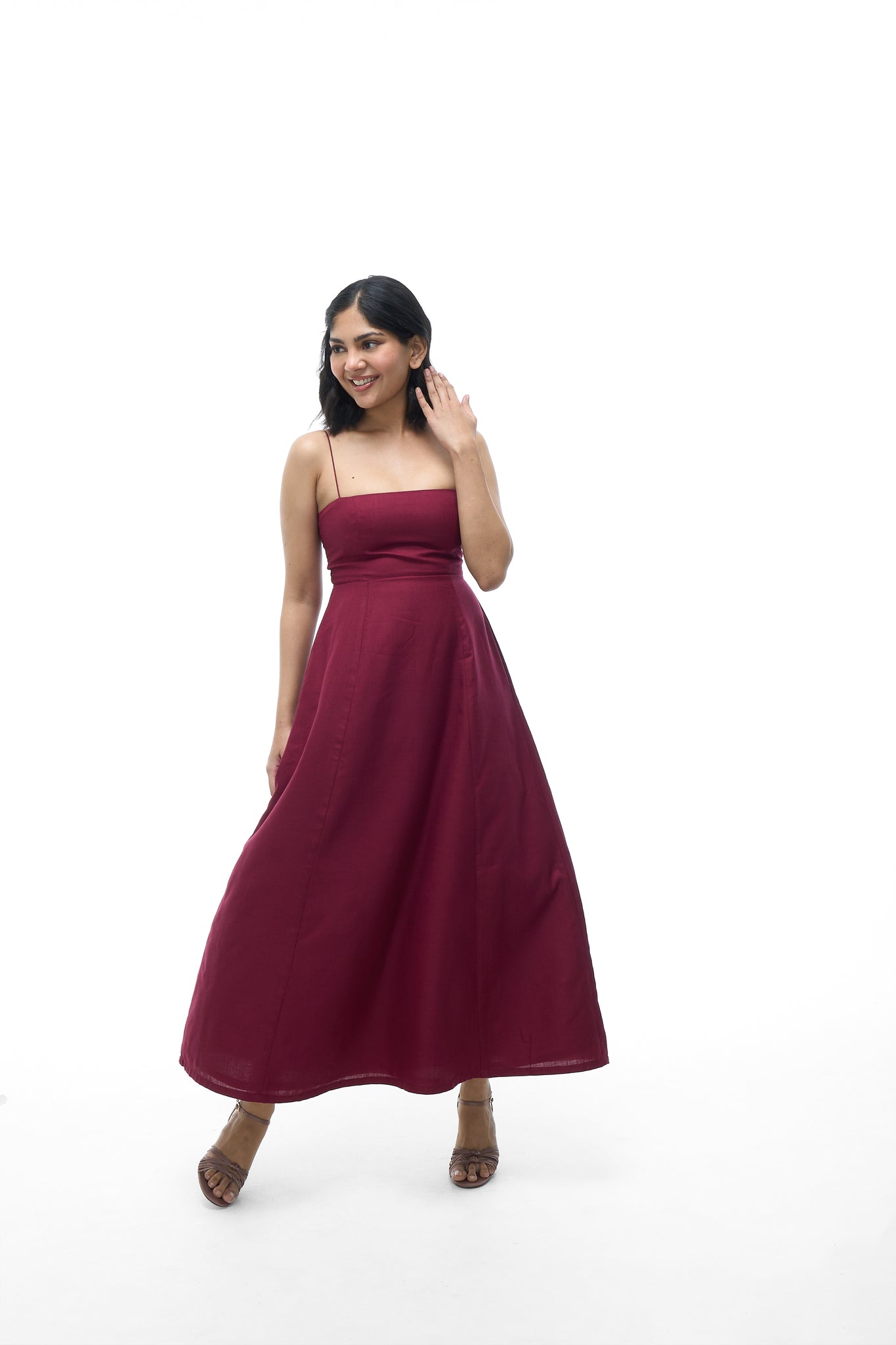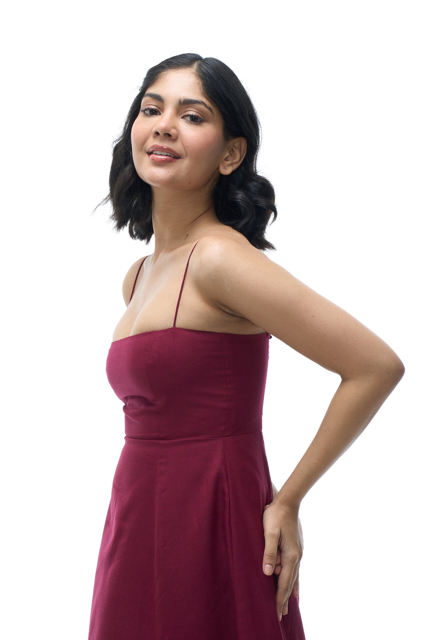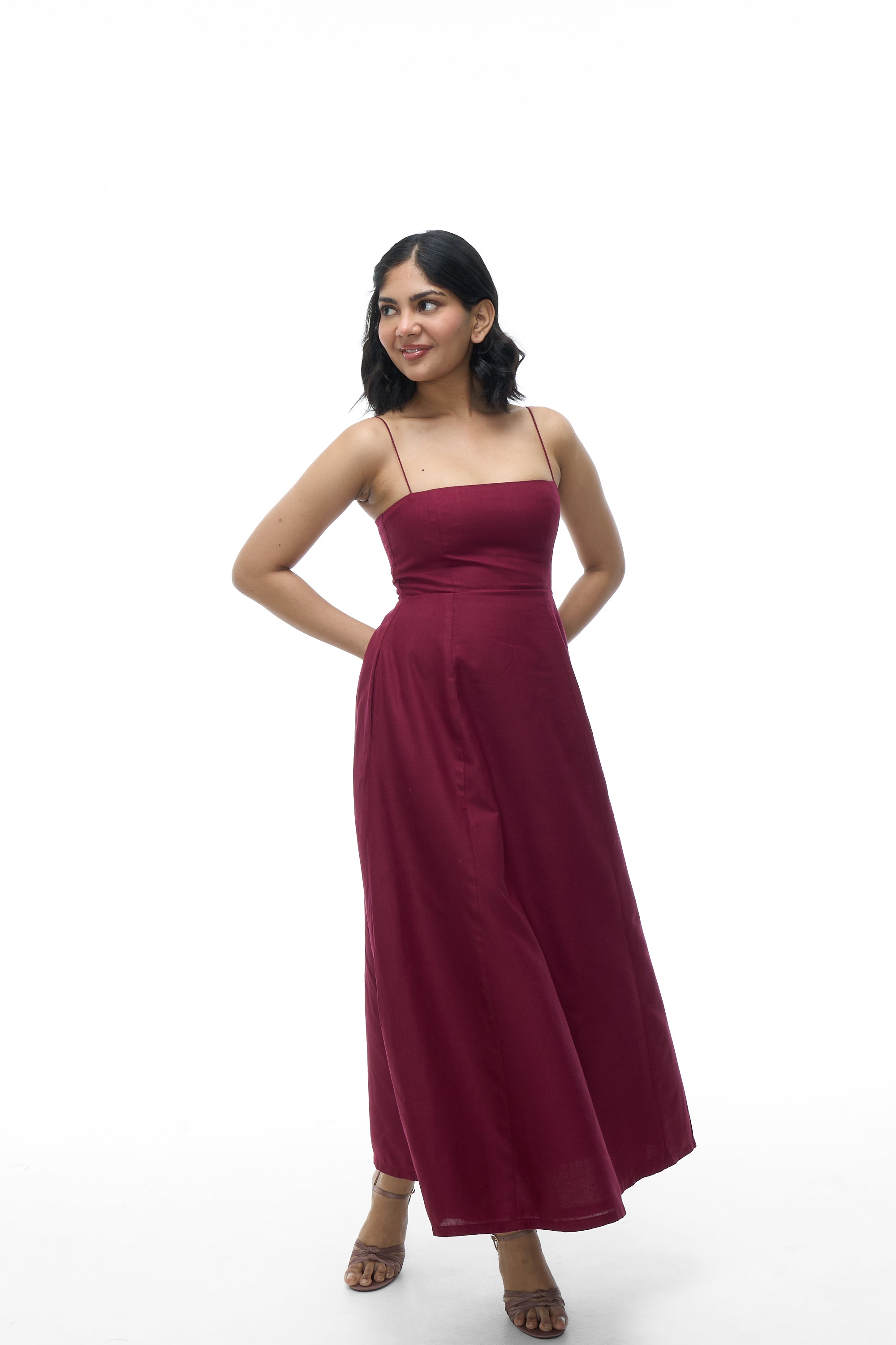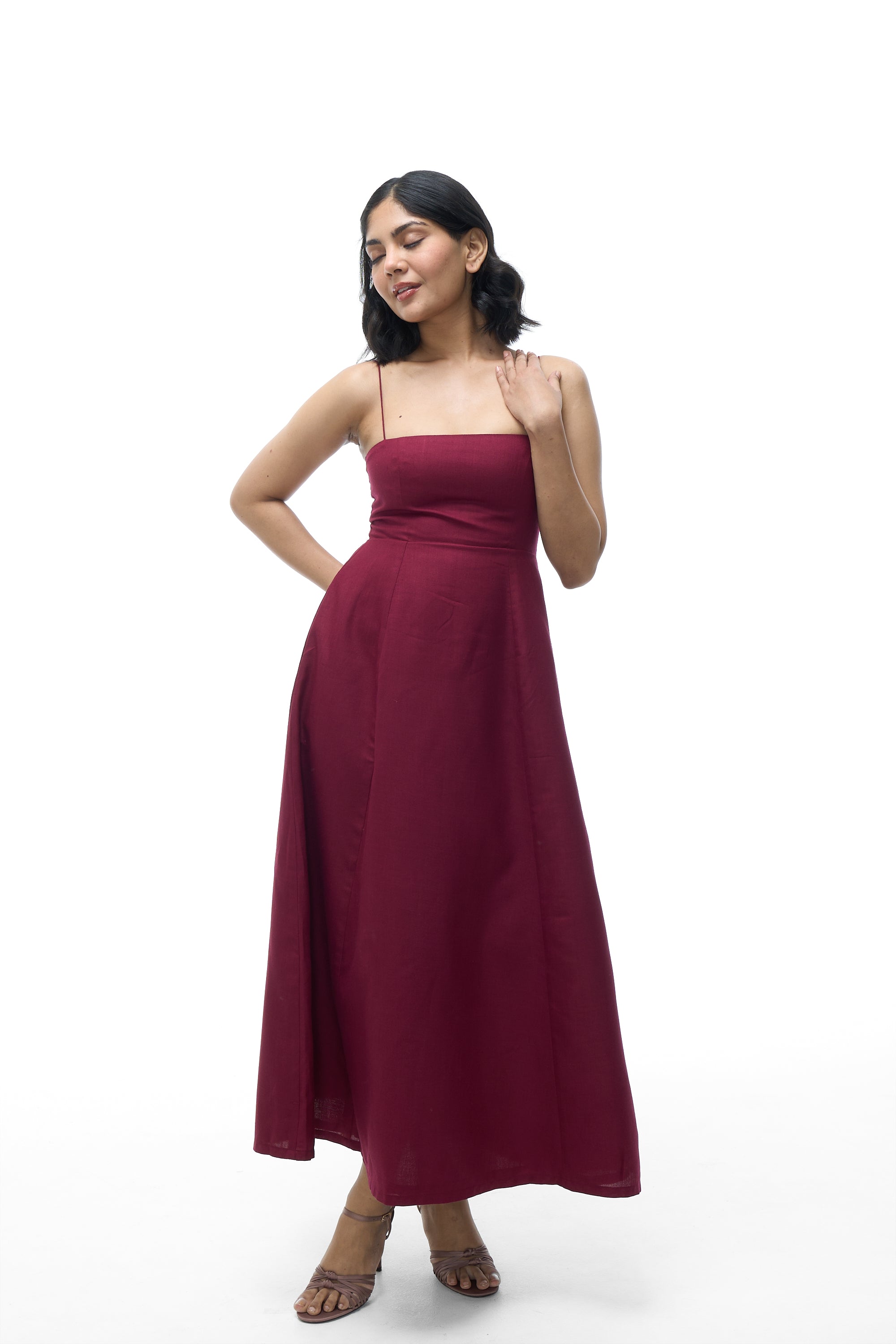 - Straps: Spaghetti straps