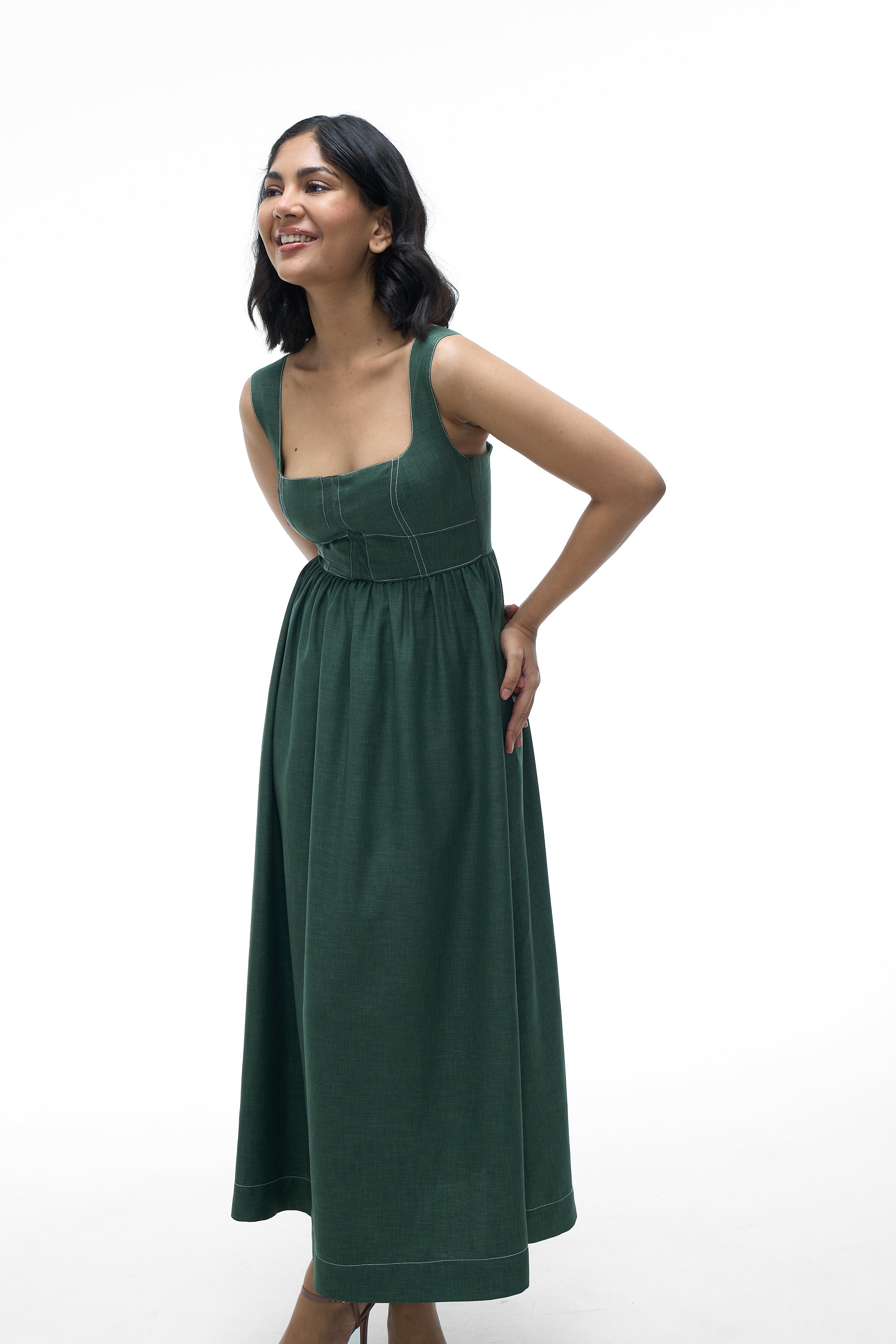 - Neckline: Square neckline
