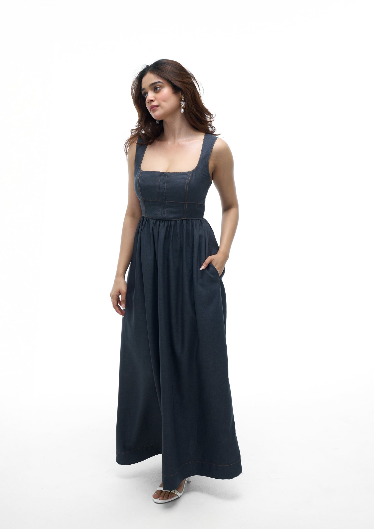 - Fit: Structured front bodice with a fully smocked back panel and zipper for a flexible fit