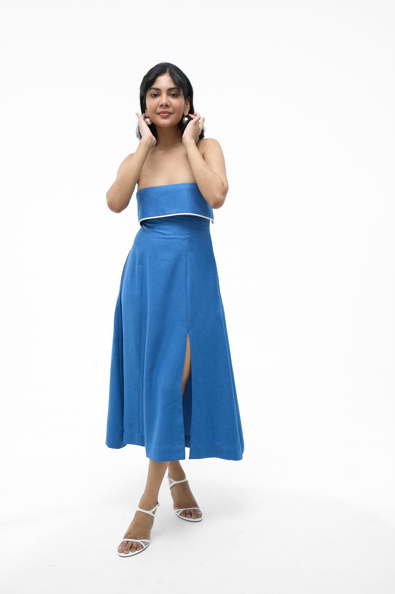Details: Features a chic foldover bandeau top with elegant contrast white piping; functional side-seam pockets; comfortable smocked back panel for a perfect silhouette.