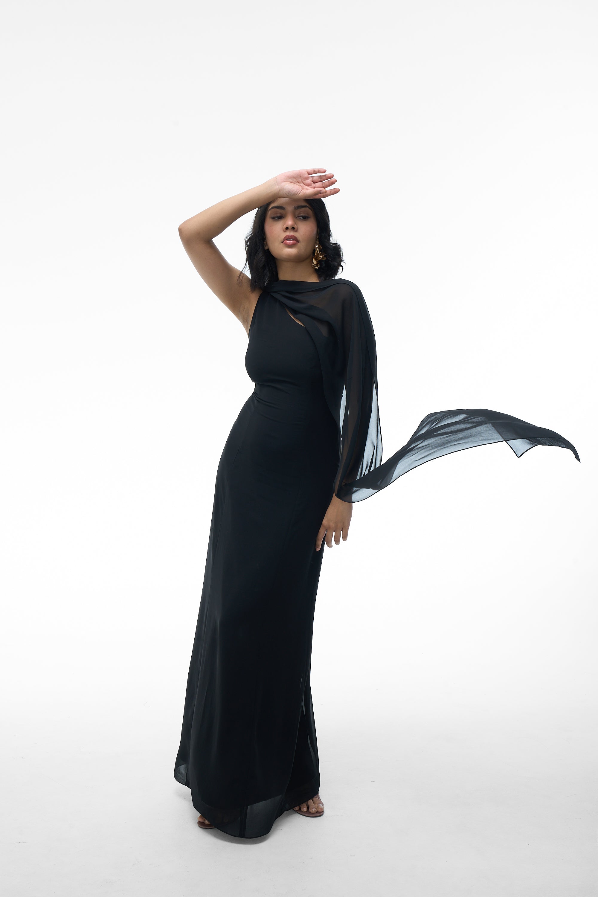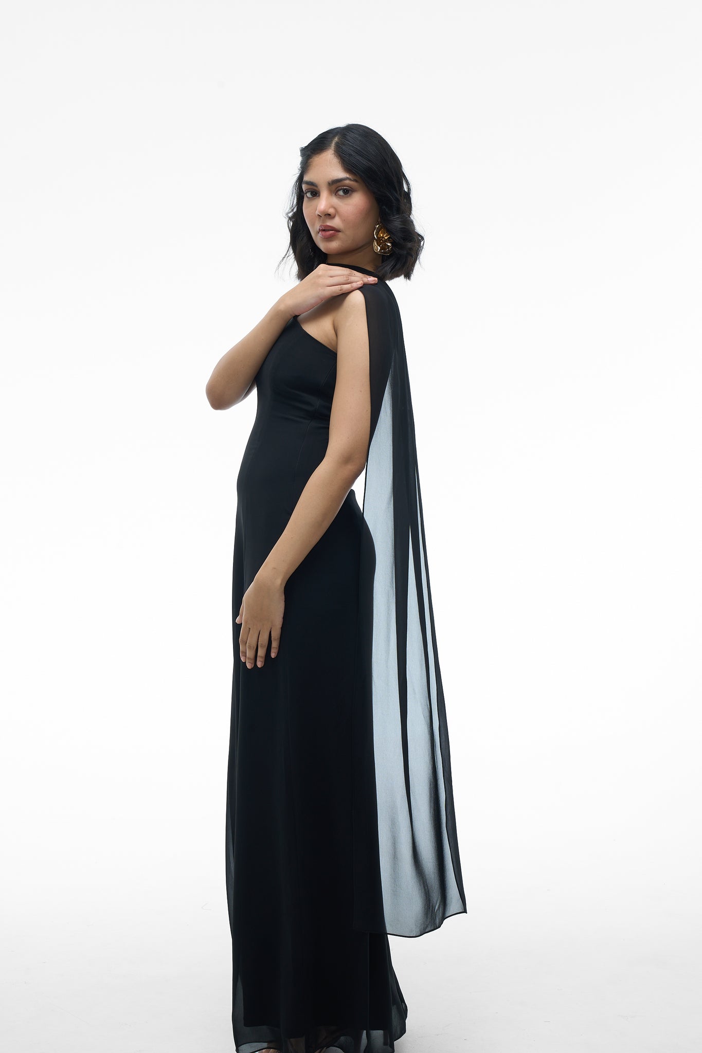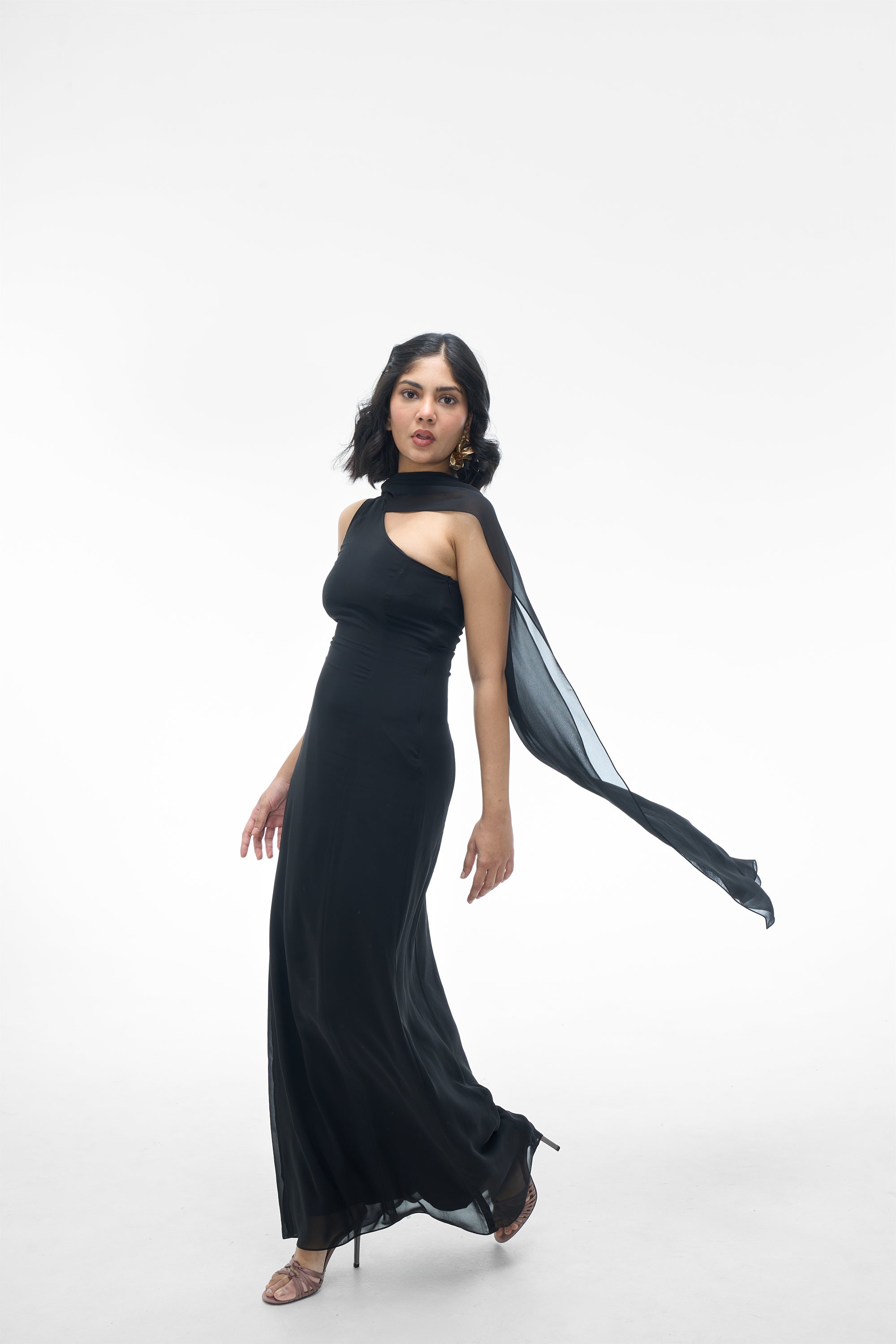 - Style: Gown with Attached Scarf